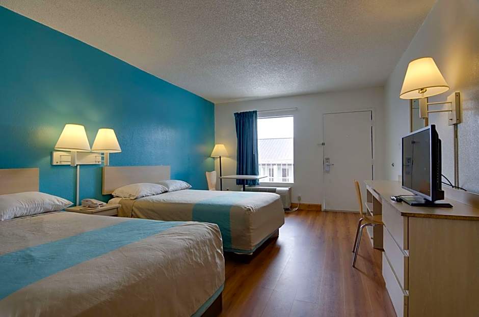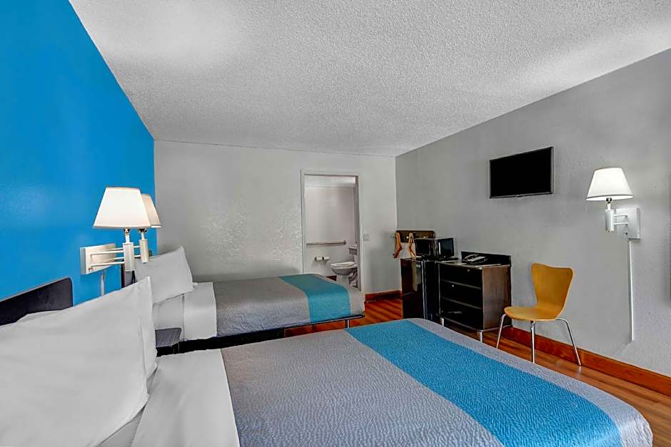 A cable TV, small refrigerator, and microwave are featured in this nonsmoking room.
